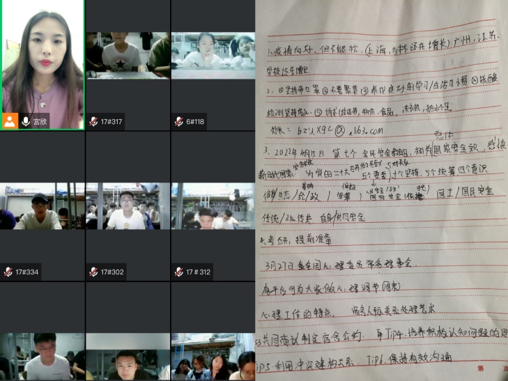 会上,辅导员老师结合相关案例向同学们详细地介绍了“什么是国家安全?”“为什么要设立国家安全日?”,并深刻阐述了总体国家安全观“五大要素”“五对关系”“十个坚持”“五个统筹”的内涵。辅导员老师强调:作为新时代大学生,应密切关注祖国发展和世界形势变化,结合新冠肺炎疫情深刻理解总体国家安全观这一重要理念,深刻认识当前疫情防控的严峻形势,自觉遵守学校的各项疫情防控制度,不能有丝毫的松懈、麻痹大意心理,用实际行动维护国家安全。会后,辅导员采取“你问我答”的方式与同学们互动,进一步检验学习成效,提升了教育效果。