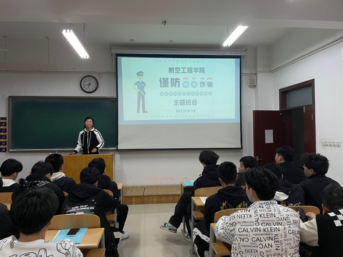 为进一步提升学生防范电信诈骗违法犯罪意识,有效遏制电信诈骗,切实保障广大学生财产安全。3月19日晚,申慱sunbet网站在各班会教室召开“防范诈骗,警钟长鸣”教育主题班会,各班班主任主持班会,全体学生参加了会议。