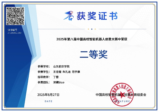 中国高校智能机器人创意大赛是国内高校机器人领域具有较高影响力与广泛参与度的权威赛事之一,旨在推动机器人技术与人工智能的创新应用,促进跨学科融合与人才培养。经过层层选拔,我们由陈泽逸、王朝磊组成的代表队凭借出色的创新设计与技术实现,在“无人机格斗”赛道中斩获全国一等奖和三等奖;另有于双宁团队、王佳璇团队在“创意类机器人”赛道获二等奖。